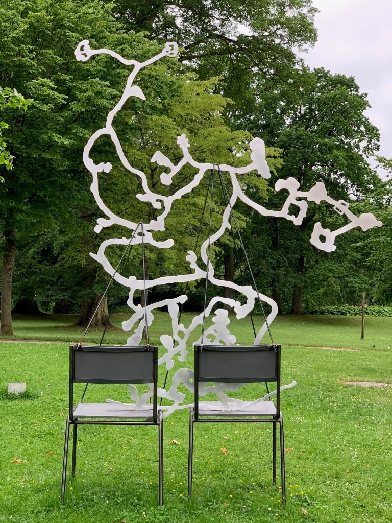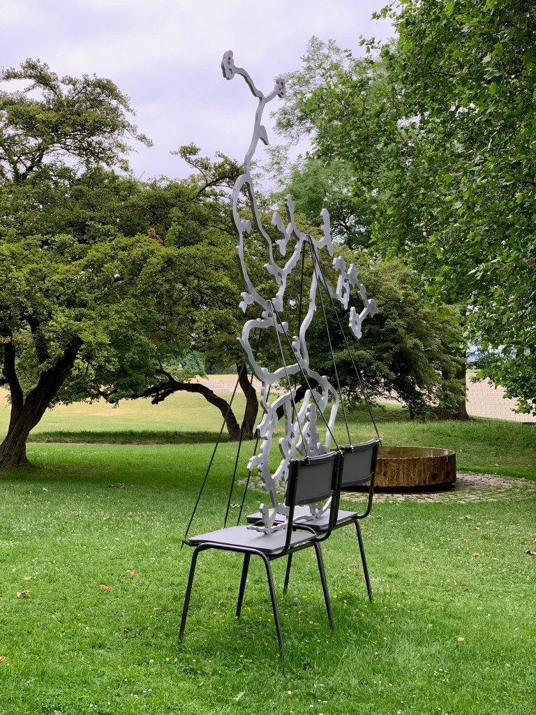 Skulpturen Labyrint består af en figur, der står oprejst og fastgjort på to stole. Figuren er baseret på en tegning lavet af den omrejsende kunstner F. W. Sieber i 1817. Tegningen er en optegning af Gortyna grotterne i Mount Ida I det sydlige Kreta.. Grotten kaldes også Gortyna Labyrinten og anses af nogle som værende den oprindelige Minotauros’ labyrint. Sieber’s valg af mytens ophav som motiv gør i mine øjne hans tegning til et godt eksempel på den brydningstid den er skabt i. Den indfanger den omrokering af videnshierakierne, der skete i oplysningstiden, hvor de fantastiske mytiske fortællinger måtte vige for det videnskabelige verdenssyn. Skulpturen taler på den måde om omskifteligheden i vores tilgang til verden.